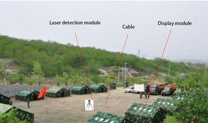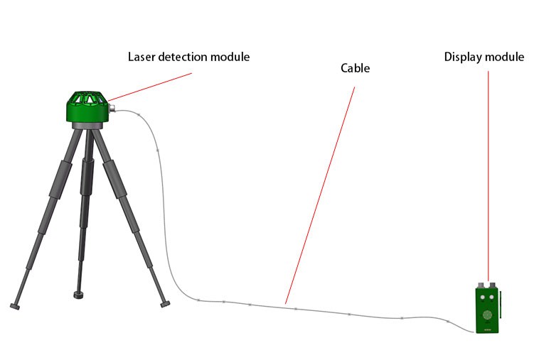 Le détecteur laser se compose principalement d'un module de détection laser et d'un module d'affichage. Le module de détection laser peut être monté sur un trépied ou une plate-forme de véhicule et peut réaliser une détection azimutale à 360°. Le module d'affichage est utilisé pour afficher des informations laser pour le personnel.